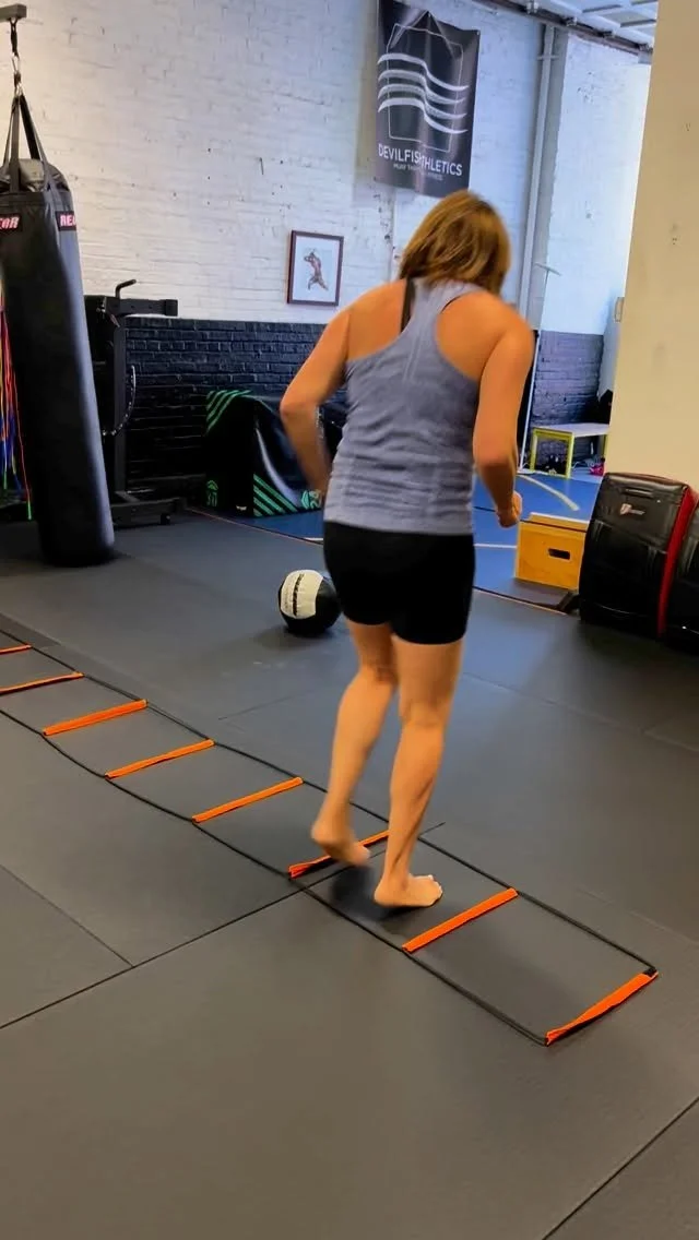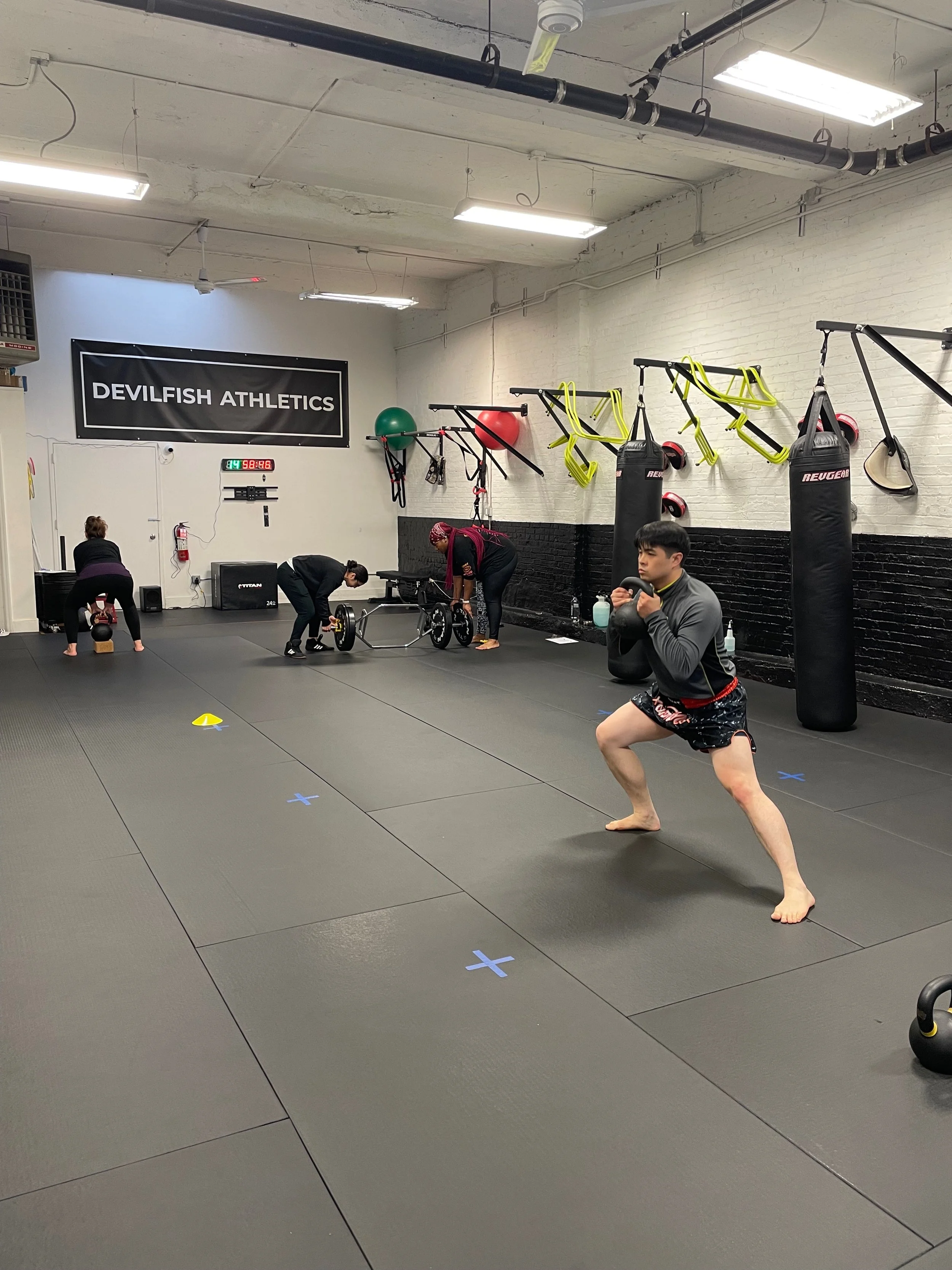 — N.S (current client)I came to Devilfish Athletics after years of struggling to stay consistent with fitness. As a good (but not great) high school athlete who didn’t continue into college, I spent most of my 20s and early 30s trying (and failing) to get back into my “peak shape” on my own--usually ending up in a cycle of injury, lost motivation, long stretches of inactivity, and then poor performance as I tried to rush back. Training here has completely changed that. The coaches (Andrea and Naomi, you two are amazing) have helped me build strength in a steady, sustainable way. When I’ve had small injuries, they’ve coached me through recovery without losing momentum. I’ve now been coming twice a week for a year, which is easily the most consistent I’ve been in my adult life.